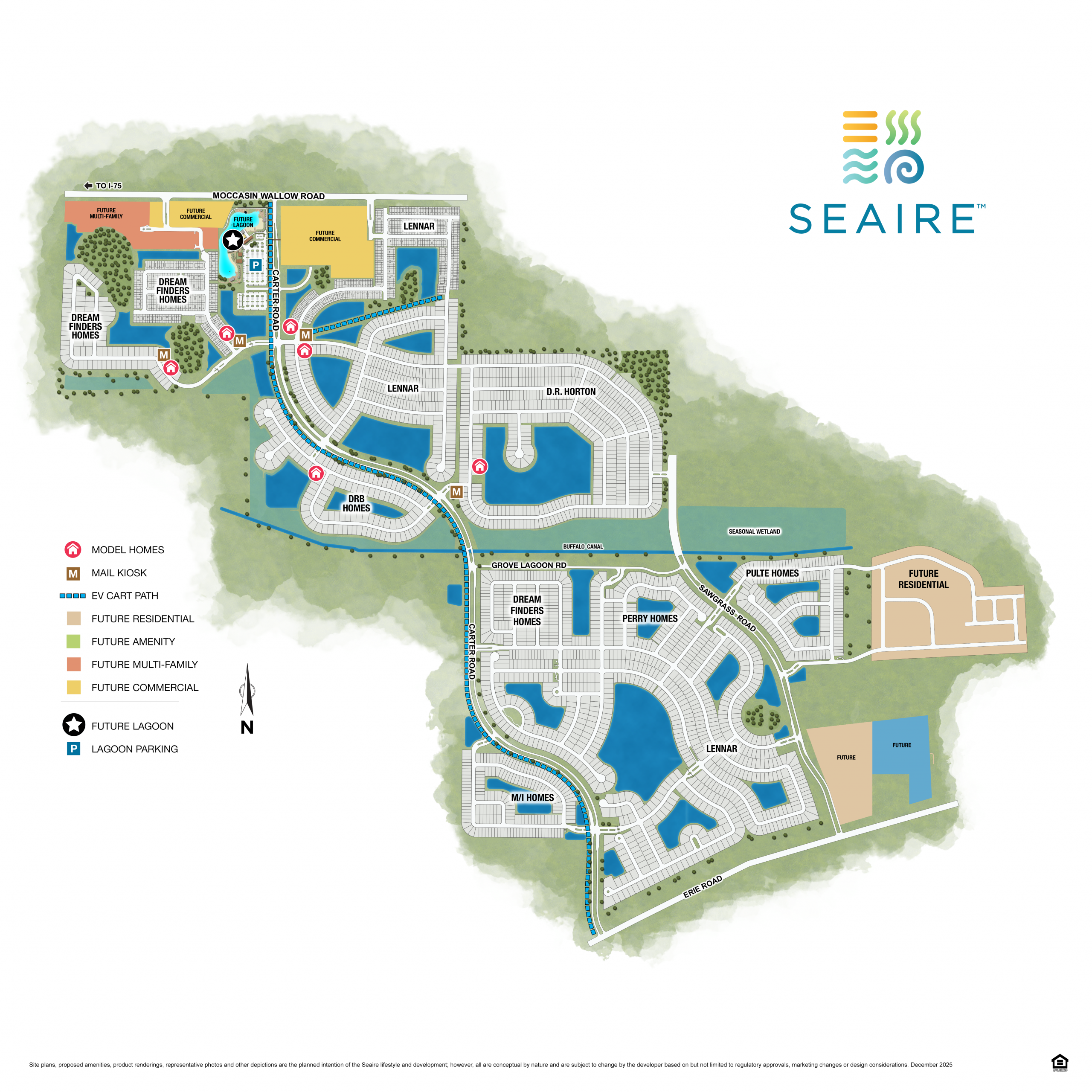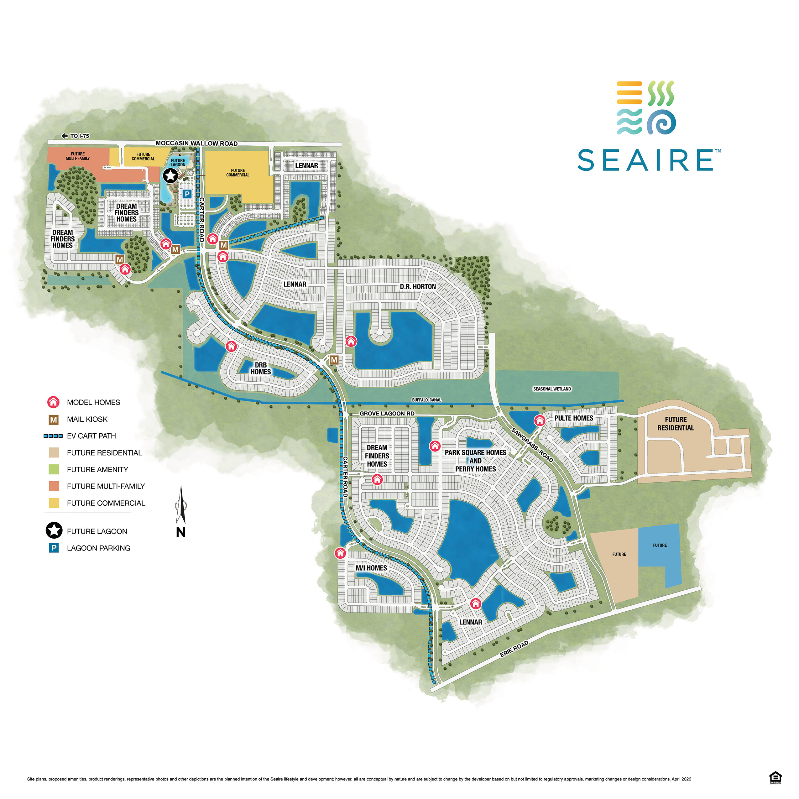 Yes. Seaire offers model homes from D. R. Horton, Lennar, and other builders. Schedule a visit with the builder of your choice to tour available models and explore floorplans.