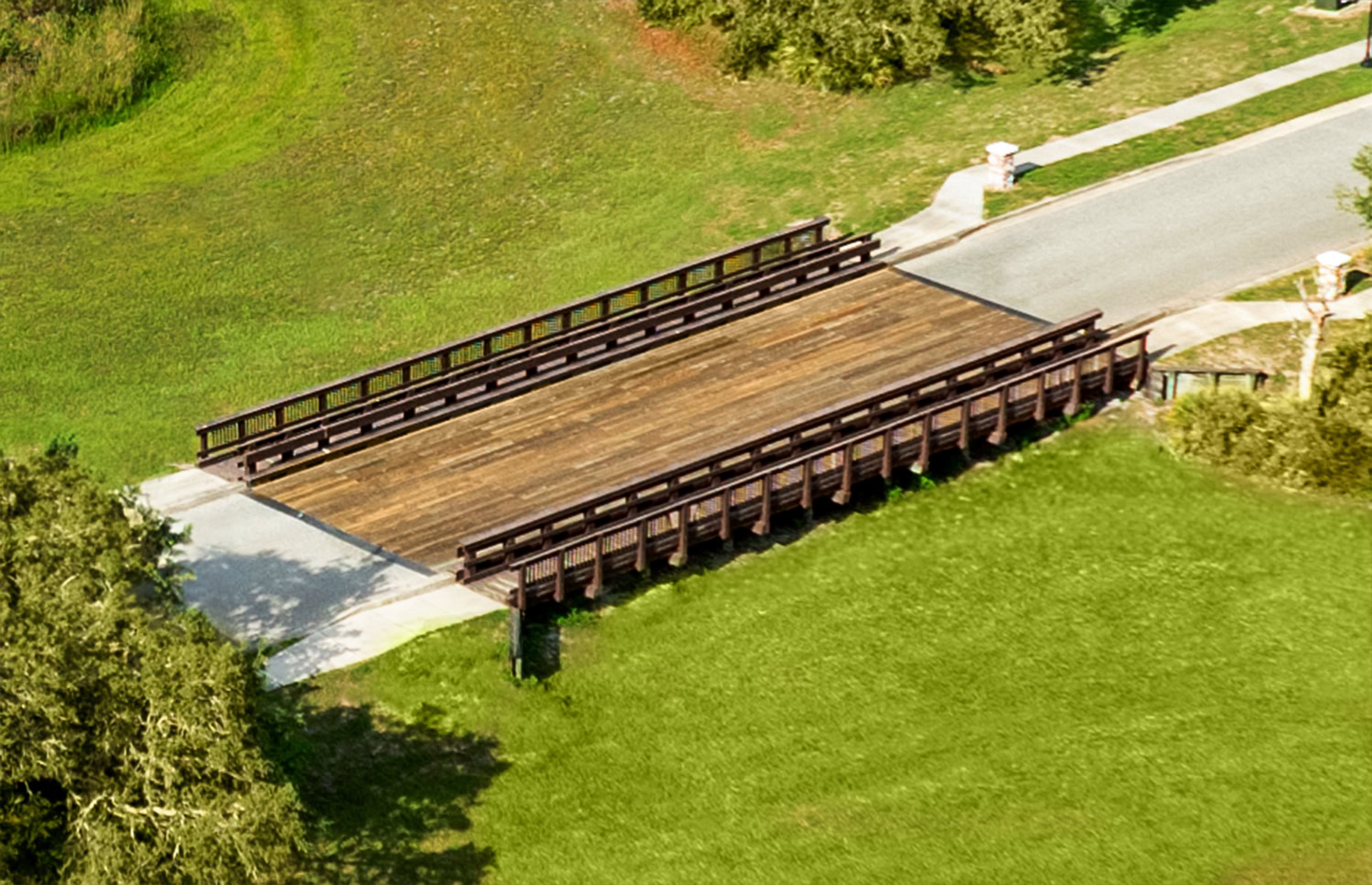 Beautifully designed wooden bridges connecting natural wetlands and offering picturesque views of the landscape.